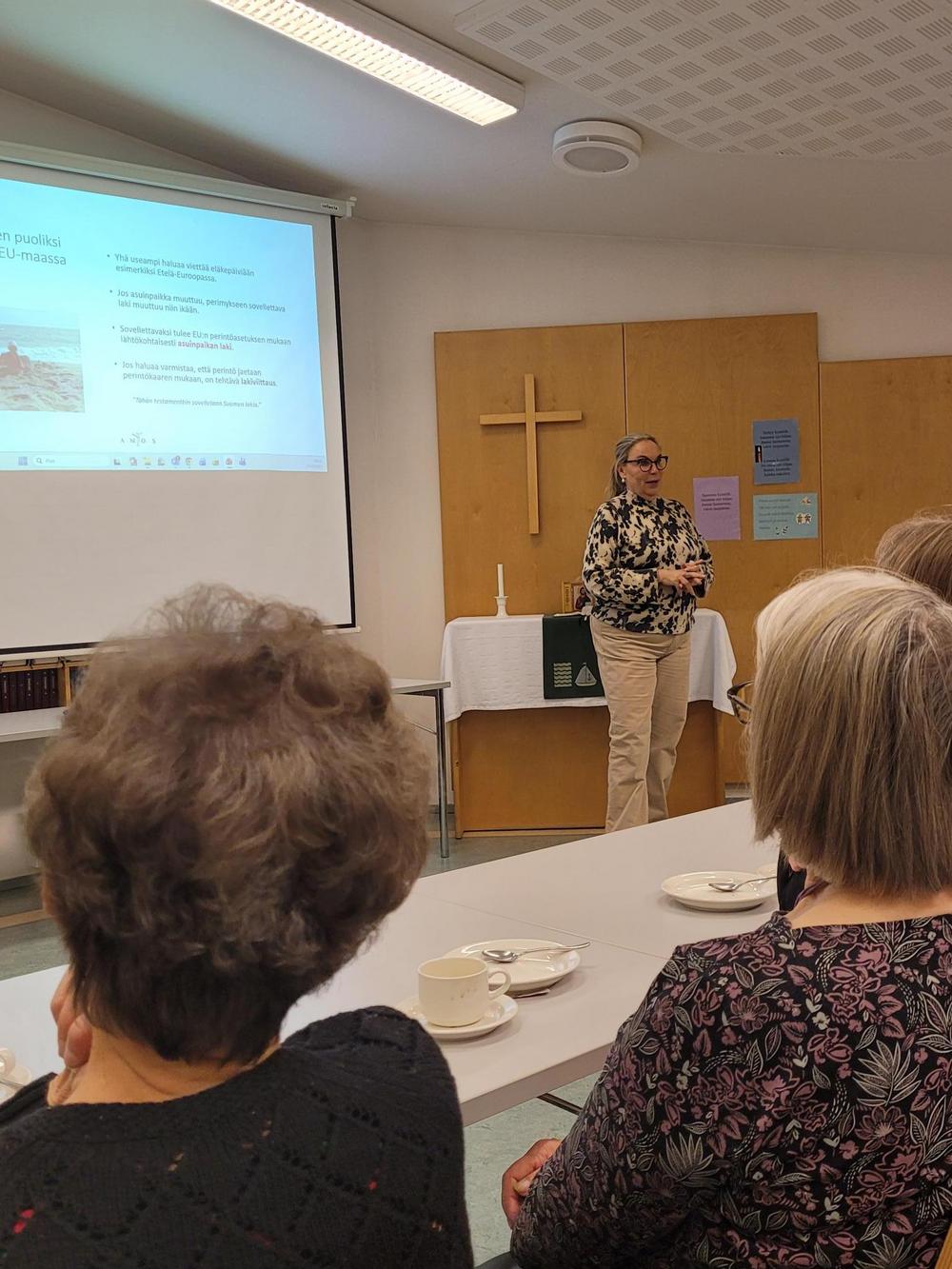 Lokakuun asiantuntijavieraanamme oli Amos Oy:n asianajaja Tuula Rainto, itsekin Pro-martta, perehdyttäen meidät kodin tärkeisiin asiakirjoihin mm. edunvalvontavaltakirjaan ja testamenttiin.