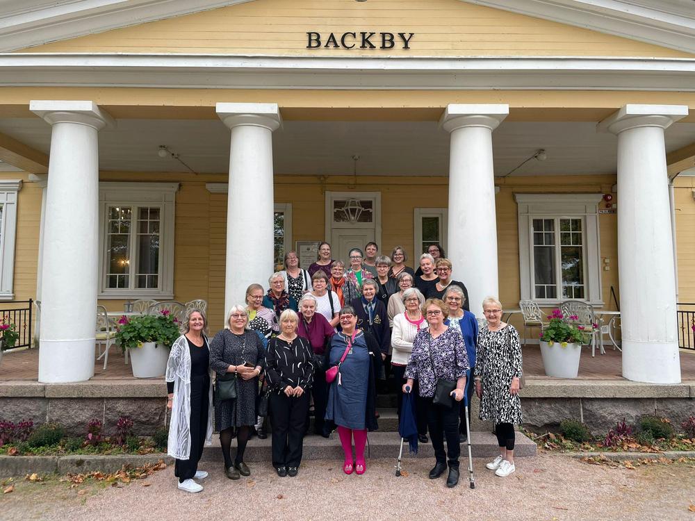 40 juhlaa kuvassa 2 juhlimme Espoon Backbyn kartanolla, entisessä Kaisankodissa torstaina 25. syyskuuta. Puheenjohtajamme Maritta Rantalan tervetuliaistoivotuksien ja maljan nostamisen jälkeen saimme nauttia kartanon syksyisen buffetin herkuista.